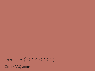 Decimal 305436566 Color is a normal red color and the nearest color is Contessa #c6726b. Hex code #bc7164 and RGB value is rgb(188,113,100). In RGB color space, this color is composed of 74% red, 44% green, 39% blue, In CMYK color space, this color is composed of 0% cyan, 40% magenta, 47% yellow , 26% black , In HSL color space, this color has a hue angle of 9° , 40% saturation and 56% lightness.