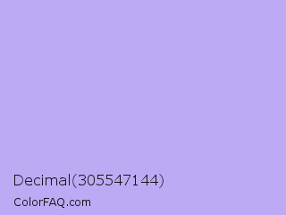 Decimal 305547144 Color is a very light indigo color and the nearest color is Biloba Flower #b2a1ea. Hex code #bcabf4 and RGB value is rgb(188,171,244). In RGB color space, this color is composed of 74% red, 67% green, 96% blue, In CMYK color space, this color is composed of 23% cyan, 30% magenta, 0% yellow , 4% black , In HSL color space, this color has a hue angle of 254° , 77% saturation and 81% lightness.