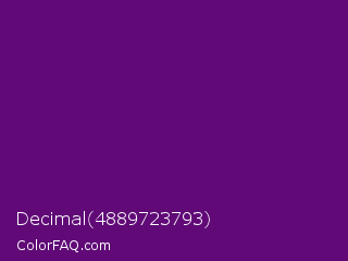 Decimal 4889723793 Color is a dark purple color and the nearest color is Pigment Indigo #4b0082. Hex code #600977 and RGB value is rgb(96,9,119). In RGB color space, this color is composed of 38% red, 4% green, 47% blue, In CMYK color space, this color is composed of 19% cyan, 92% magenta, 0% yellow , 53% black , In HSL color space, this color has a hue angle of 287° , 86% saturation and 25% lightness.