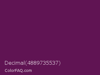 Decimal 4889735537 Color is a dark magenta color and the nearest color is Tawny Port #692545. Hex code #601453 and RGB value is rgb(96,20,83). In RGB color space, this color is composed of 38% red, 8% green, 33% blue, In CMYK color space, this color is composed of 0% cyan, 79% magenta, 14% yellow , 62% black , In HSL color space, this color has a hue angle of 310° , 66% saturation and 23% lightness.