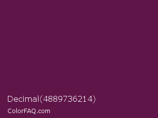 Decimal 4889736214 Color is a dark magenta color and the nearest color is Tawny Port #692545. Hex code #601548 and RGB value is rgb(96,21,72). In RGB color space, this color is composed of 38% red, 8% green, 28% blue, In CMYK color space, this color is composed of 0% cyan, 78% magenta, 25% yellow , 62% black , In HSL color space, this color has a hue angle of 319° , 64% saturation and 23% lightness.
