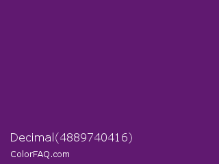Decimal 4889740416 Color is a dark purple color and the nearest color is Honey Flower #4f1c70. Hex code #601970 and RGB value is rgb(96,25,112). In RGB color space, this color is composed of 38% red, 10% green, 44% blue, In CMYK color space, this color is composed of 14% cyan, 78% magenta, 0% yellow , 56% black , In HSL color space, this color has a hue angle of 289° , 64% saturation and 27% lightness.