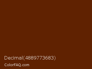Decimal 4889773683 Color is a very dark orange color and the nearest color is Brown Bramble #592804. Hex code #602201 and RGB value is rgb(96,34,1). In RGB color space, this color is composed of 38% red, 13% green, 0% blue, In CMYK color space, this color is composed of 0% cyan, 65% magenta, 99% yellow , 62% black , In HSL color space, this color has a hue angle of 21° , 98% saturation and 19% lightness.
