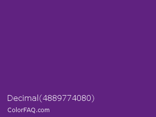 Decimal 4889774080 Color is a normal purple color and the nearest color is Regalia #522d80. Hex code #602280 and RGB value is rgb(96,34,128). In RGB color space, this color is composed of 38% red, 13% green, 50% blue, In CMYK color space, this color is composed of 25% cyan, 73% magenta, 0% yellow , 50% black , In HSL color space, this color has a hue angle of 280° , 58% saturation and 32% lightness.