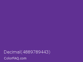 Decimal 4889789443 Color is a normal violet color and the nearest color is Rebecca Purple #663399. Hex code #603093 and RGB value is rgb(96,48,147). In RGB color space, this color is composed of 38% red, 19% green, 58% blue, In CMYK color space, this color is composed of 35% cyan, 67% magenta, 0% yellow , 42% black , In HSL color space, this color has a hue angle of 269° , 51% saturation and 38% lightness.