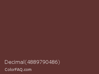 Decimal 4889790486 Color is a dark red color and the nearest color is Buccaneer #622f30. Hex code #603230 and RGB value is rgb(96,50,48). In RGB color space, this color is composed of 38% red, 20% green, 19% blue, In CMYK color space, this color is composed of 0% cyan, 48% magenta, 50% yellow , 62% black , In HSL color space, this color has a hue angle of 3° , 33% saturation and 28% lightness.