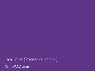 Decimal 4889793559 Color is a normal purple color and the nearest color is Blue Magenta Violet #553592. Hex code #603489 and RGB value is rgb(96,52,137). In RGB color space, this color is composed of 38% red, 20% green, 54% blue, In CMYK color space, this color is composed of 30% cyan, 62% magenta, 0% yellow , 46% black , In HSL color space, this color has a hue angle of 271° , 45% saturation and 37% lightness.