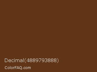 Decimal 4889793888 Color is a dark orange color and the nearest color is Jambalaya #5b3013. Hex code #603518 and RGB value is rgb(96,53,24). In RGB color space, this color is composed of 38% red, 21% green, 9% blue, In CMYK color space, this color is composed of 0% cyan, 45% magenta, 75% yellow , 62% black , In HSL color space, this color has a hue angle of 24° , 60% saturation and 24% lightness.