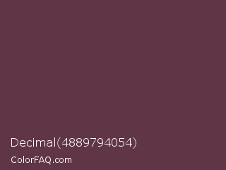 Decimal 4889794054 Color is a dark rose color and the nearest color is Wine Dregs #673147. Hex code #603546 and RGB value is rgb(96,53,70). In RGB color space, this color is composed of 38% red, 21% green, 27% blue, In CMYK color space, this color is composed of 0% cyan, 45% magenta, 27% yellow , 62% black , In HSL color space, this color has a hue angle of 336° , 29% saturation and 29% lightness.