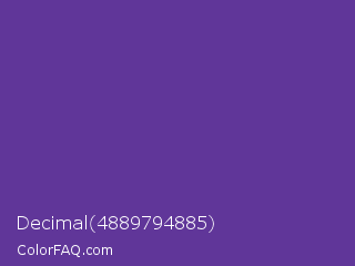 Decimal 4889794885 Color is a normal violet color and the nearest color is Rebecca Purple #663399. Hex code #603699 and RGB value is rgb(96,54,153). In RGB color space, this color is composed of 38% red, 21% green, 60% blue, In CMYK color space, this color is composed of 37% cyan, 65% magenta, 0% yellow , 40% black , In HSL color space, this color has a hue angle of 265° , 48% saturation and 41% lightness.