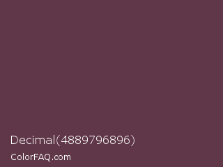 Decimal 4889796896 Color is a dark rose color and the nearest color is Wine Dregs #673147. Hex code #603748 and RGB value is rgb(96,55,72). In RGB color space, this color is composed of 38% red, 22% green, 28% blue, In CMYK color space, this color is composed of 0% cyan, 43% magenta, 25% yellow , 62% black , In HSL color space, this color has a hue angle of 335° , 27% saturation and 30% lightness.
