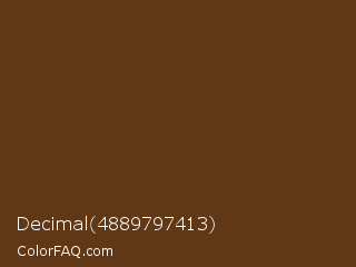 Decimal 4889797413 Color is a dark orange color and the nearest color is Jambalaya #5b3013. Hex code #603815 and RGB value is rgb(96,56,21). In RGB color space, this color is composed of 38% red, 22% green, 8% blue, In CMYK color space, this color is composed of 0% cyan, 42% magenta, 78% yellow , 62% black , In HSL color space, this color has a hue angle of 28° , 64% saturation and 23% lightness.