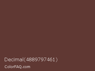 Decimal 4889797461 Color is a dark red color and the nearest color is Congo Brown #593737. Hex code #603833 and RGB value is rgb(96,56,51). In RGB color space, this color is composed of 38% red, 22% green, 20% blue, In CMYK color space, this color is composed of 0% cyan, 42% magenta, 47% yellow , 62% black , In HSL color space, this color has a hue angle of 7° , 31% saturation and 29% lightness.