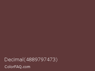 Decimal 4889797473 Color is a dark red color and the nearest color is Congo Brown #593737. Hex code #603839 and RGB value is rgb(96,56,57). In RGB color space, this color is composed of 38% red, 22% green, 22% blue, In CMYK color space, this color is composed of 0% cyan, 42% magenta, 41% yellow , 62% black , In HSL color space, this color has a hue angle of 359° , 26% saturation and 30% lightness.