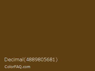 Decimal 4889805681 Color is a dark orange color and the nearest color is Pullman Brown UPS Brown #644117. Hex code #604013 and RGB value is rgb(96,64,19). In RGB color space, this color is composed of 38% red, 25% green, 7% blue, In CMYK color space, this color is composed of 0% cyan, 33% magenta, 80% yellow , 62% black , In HSL color space, this color has a hue angle of 35° , 67% saturation and 23% lightness.