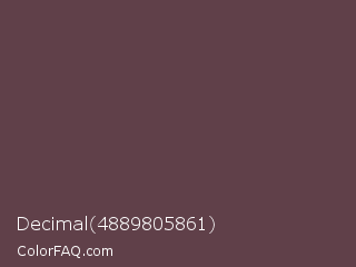 Decimal 4889805861 Color is a normal rose color and the nearest color is Deep Tuscan Red #66424d. Hex code #604049 and RGB value is rgb(96,64,73). In RGB color space, this color is composed of 38% red, 25% green, 29% blue, In CMYK color space, this color is composed of 0% cyan, 33% magenta, 24% yellow , 62% black , In HSL color space, this color has a hue angle of 343° , 20% saturation and 31% lightness.