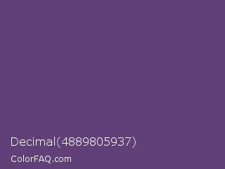 Decimal 4889805937 Color is a normal purple color and the nearest color is Cyber Grape #58427c. Hex code #604077 and RGB value is rgb(96,64,119). In RGB color space, this color is composed of 38% red, 25% green, 47% blue, In CMYK color space, this color is composed of 19% cyan, 46% magenta, 0% yellow , 53% black , In HSL color space, this color has a hue angle of 275° , 30% saturation and 36% lightness.