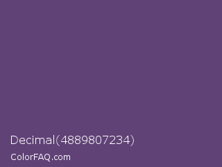 Decimal 4889807234 Color is a normal purple color and the nearest color is Cyber Grape #58427c. Hex code #604276 and RGB value is rgb(96,66,118). In RGB color space, this color is composed of 38% red, 26% green, 46% blue, In CMYK color space, this color is composed of 19% cyan, 44% magenta, 0% yellow , 54% black , In HSL color space, this color has a hue angle of 275° , 28% saturation and 36% lightness.