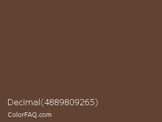 Decimal 4889809265 Color is a dark orange color and the nearest color is Millbrook #594433. Hex code #604333 and RGB value is rgb(96,67,51). In RGB color space, this color is composed of 38% red, 26% green, 20% blue, In CMYK color space, this color is composed of 0% cyan, 30% magenta, 47% yellow , 62% black , In HSL color space, this color has a hue angle of 21° , 31% saturation and 29% lightness.
