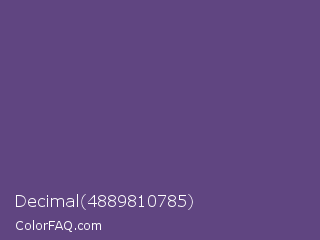 Decimal 4889810785 Color is a normal violet color and the nearest color is Cyber Grape #58427c. Hex code #604581 and RGB value is rgb(96,69,129). In RGB color space, this color is composed of 38% red, 27% green, 51% blue, In CMYK color space, this color is composed of 26% cyan, 47% magenta, 0% yellow , 49% black , In HSL color space, this color has a hue angle of 267° , 30% saturation and 39% lightness.