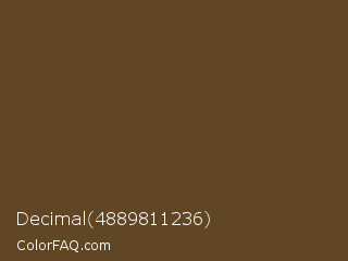 Decimal 4889811236 Color is a dark orange color and the nearest color is Otter Brown #654321. Hex code #604624 and RGB value is rgb(96,70,36). In RGB color space, this color is composed of 38% red, 27% green, 14% blue, In CMYK color space, this color is composed of 0% cyan, 27% magenta, 63% yellow , 62% black , In HSL color space, this color has a hue angle of 34° , 45% saturation and 26% lightness.