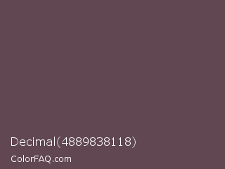 Decimal 4889838118 Color is a normal rose color and the nearest color is Don Juan #5d4c51. Hex code #604752 and RGB value is rgb(96,71,82). In RGB color space, this color is composed of 38% red, 28% green, 32% blue, In CMYK color space, this color is composed of 0% cyan, 26% magenta, 15% yellow , 62% black , In HSL color space, this color has a hue angle of 334° , 15% saturation and 33% lightness.