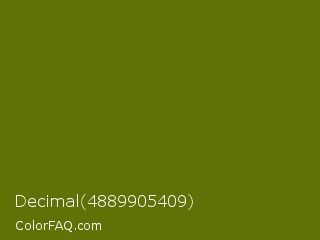 Decimal 4889905409 Color is a dark yellow color and the nearest color is Bronze Yellow #737000. Hex code #607105 and RGB value is rgb(96,113,5). In RGB color space, this color is composed of 38% red, 44% green, 2% blue, In CMYK color space, this color is composed of 15% cyan, 0% magenta, 96% yellow , 56% black , In HSL color space, this color has a hue angle of 69° , 92% saturation and 23% lightness.