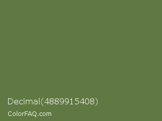 Decimal 4889915408 Color is a normal green color and the nearest color is Dingley #5d7747. Hex code #607942 and RGB value is rgb(96,121,66). In RGB color space, this color is composed of 38% red, 47% green, 26% blue, In CMYK color space, this color is composed of 21% cyan, 0% magenta, 45% yellow , 53% black , In HSL color space, this color has a hue angle of 87° , 29% saturation and 37% lightness.