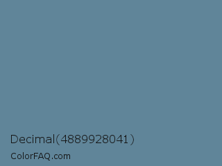Decimal 4889928041 Color is a normal blue color and the nearest color is Hoki #65869f. Hex code #608599 and RGB value is rgb(96,133,153). In RGB color space, this color is composed of 38% red, 52% green, 60% blue, In CMYK color space, this color is composed of 37% cyan, 13% magenta, 0% yellow , 40% black , In HSL color space, this color has a hue angle of 201° , 23% saturation and 49% lightness.
