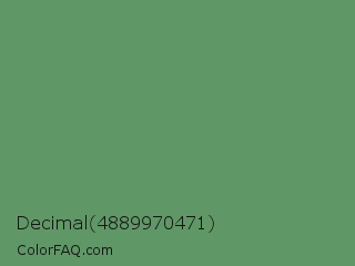 Decimal 4889970471 Color is a normal green color and the nearest color is Russian Green #679267. Hex code #609767 and RGB value is rgb(96,151,103). In RGB color space, this color is composed of 38% red, 59% green, 40% blue, In CMYK color space, this color is composed of 36% cyan, 0% magenta, 32% yellow , 41% black , In HSL color space, this color has a hue angle of 128° , 22% saturation and 48% lightness.