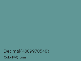 Decimal 4889970548 Color is a normal cyan color and the nearest color is Desaturated Cyan #669999. Hex code #609796 and RGB value is rgb(96,151,150). In RGB color space, this color is composed of 38% red, 59% green, 59% blue, In CMYK color space, this color is composed of 36% cyan, 0% magenta, 1% yellow , 41% black , In HSL color space, this color has a hue angle of 179° , 22% saturation and 48% lightness.