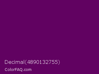 Decimal 4890132755 Color is a very dark magenta color and the nearest color is Clairvoyant #480656. Hex code #610261 and RGB value is rgb(97,2,97). In RGB color space, this color is composed of 38% red, 1% green, 38% blue, In CMYK color space, this color is composed of 0% cyan, 98% magenta, 0% yellow , 62% black , In HSL color space, this color has a hue angle of 300° , 96% saturation and 19% lightness.