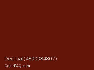 Decimal 4890984807 Color is a very dark red color and the nearest color is Dark Tan #661010. Hex code #621407 and RGB value is rgb(98,20,7). In RGB color space, this color is composed of 38% red, 8% green, 3% blue, In CMYK color space, this color is composed of 0% cyan, 80% magenta, 93% yellow , 62% black , In HSL color space, this color has a hue angle of 9° , 87% saturation and 21% lightness.