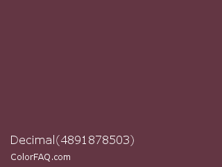 Decimal 4891878503 Color is a dark rose color and the nearest color is Wine Dregs #673147. Hex code #633643 and RGB value is rgb(99,54,67). In RGB color space, this color is composed of 39% red, 21% green, 26% blue, In CMYK color space, this color is composed of 0% cyan, 45% magenta, 32% yellow , 61% black , In HSL color space, this color has a hue angle of 343° , 29% saturation and 30% lightness.