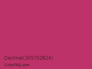 Decimal 305762824 Color is a normal rose color and the nearest color is Hibiscus #b6316c. Hex code #bd3268 and RGB value is rgb(189,50,104). In RGB color space, this color is composed of 74% red, 20% green, 41% blue, In CMYK color space, this color is composed of 0% cyan, 74% magenta, 45% yellow , 26% black , In HSL color space, this color has a hue angle of 337° , 58% saturation and 47% lightness.