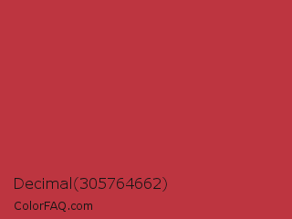 Decimal 305764662 Color is a normal red color and the nearest color is Brick Red #c62d42. Hex code #bd3540 and RGB value is rgb(189,53,64). In RGB color space, this color is composed of 74% red, 21% green, 25% blue, In CMYK color space, this color is composed of 0% cyan, 72% magenta, 66% yellow , 26% black , In HSL color space, this color has a hue angle of 355° , 56% saturation and 47% lightness.