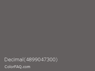 Decimal 4899047300 Color is a normal red color and the nearest color is Storm Dust #646463. Hex code #646060 and RGB value is rgb(100,96,96). In RGB color space, this color is composed of 39% red, 38% green, 38% blue, In CMYK color space, this color is composed of 0% cyan, 4% magenta, 4% yellow , 61% black , In HSL color space, this color has a hue angle of 0° , 2% saturation and 38% lightness.