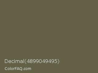 Decimal 4899049495 Color is a normal yellow color and the nearest color is Finch #626649. Hex code #646149 and RGB value is rgb(100,97,73). In RGB color space, this color is composed of 39% red, 38% green, 29% blue, In CMYK color space, this color is composed of 0% cyan, 3% magenta, 27% yellow , 61% black , In HSL color space, this color has a hue angle of 53° , 16% saturation and 34% lightness.