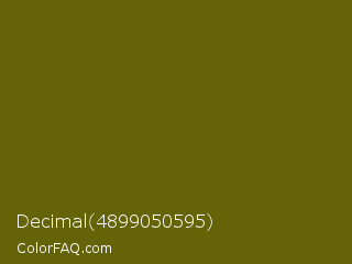 Decimal 4899050595 Color is a very dark yellow color and the nearest color is Spicy Mustard #74640d. Hex code #646307 and RGB value is rgb(100,99,7). In RGB color space, this color is composed of 39% red, 39% green, 3% blue, In CMYK color space, this color is composed of 0% cyan, 1% magenta, 93% yellow , 61% black , In HSL color space, this color has a hue angle of 59° , 87% saturation and 21% lightness.