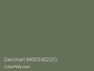 Decimal 4900340225 Color is a normal green color and the nearest color is Willow Grove #65745d. Hex code #667159 and RGB value is rgb(102,113,89). In RGB color space, this color is composed of 40% red, 44% green, 35% blue, In CMYK color space, this color is composed of 10% cyan, 0% magenta, 21% yellow , 56% black , In HSL color space, this color has a hue angle of 88° , 12% saturation and 40% lightness.