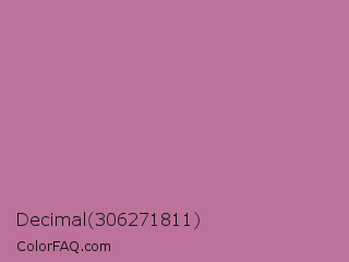 Decimal 306271811 Color is a normal magenta color and the nearest color is Pearly Purple #b768a2. Hex code #bd729b and RGB value is rgb(189,114,155). In RGB color space, this color is composed of 74% red, 45% green, 61% blue, In CMYK color space, this color is composed of 0% cyan, 40% magenta, 18% yellow , 26% black , In HSL color space, this color has a hue angle of 327° , 36% saturation and 59% lightness.