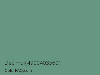 Decimal 4900403560 Color is a normal green color and the nearest color is Patina #639a8f. Hex code #669780 and RGB value is rgb(102,151,128). In RGB color space, this color is composed of 40% red, 59% green, 50% blue, In CMYK color space, this color is composed of 32% cyan, 0% magenta, 15% yellow , 41% black , In HSL color space, this color has a hue angle of 152° , 19% saturation and 50% lightness.