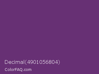 Decimal 4901056804 Color is a normal purple color and the nearest color is Imperial #602f6b. Hex code #673074 and RGB value is rgb(103,48,116). In RGB color space, this color is composed of 40% red, 19% green, 45% blue, In CMYK color space, this color is composed of 11% cyan, 59% magenta, 0% yellow , 55% black , In HSL color space, this color has a hue angle of 289° , 41% saturation and 32% lightness.