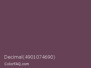 Decimal 4901074690 Color is a normal rose color and the nearest color is Eggplant #614051. Hex code #674256 and RGB value is rgb(103,66,86). In RGB color space, this color is composed of 40% red, 26% green, 34% blue, In CMYK color space, this color is composed of 0% cyan, 36% magenta, 17% yellow , 60% black , In HSL color space, this color has a hue angle of 328° , 22% saturation and 33% lightness.