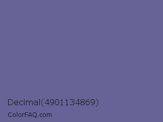 Decimal 4901134869 Color is a normal indigo color and the nearest color is Dark Blue Gray #666699. Hex code #676397 and RGB value is rgb(103,99,151). In RGB color space, this color is composed of 40% red, 39% green, 59% blue, In CMYK color space, this color is composed of 32% cyan, 34% magenta, 0% yellow , 41% black , In HSL color space, this color has a hue angle of 245° , 21% saturation and 49% lightness.