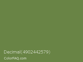 Decimal 4902442579 Color is a normal green color and the nearest color is Dingley #5d7747. Hex code #698445 and RGB value is rgb(105,132,69). In RGB color space, this color is composed of 41% red, 52% green, 27% blue, In CMYK color space, this color is composed of 20% cyan, 0% magenta, 48% yellow , 48% black , In HSL color space, this color has a hue angle of 86° , 31% saturation and 39% lightness.