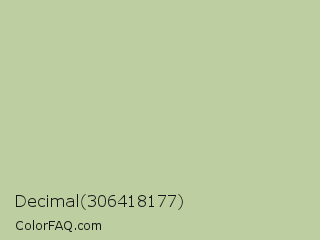 Decimal 306418177 Color is a light green color and the nearest color is Rainee #b9c8ac. Hex code #bdcea1 and RGB value is rgb(189,206,161). In RGB color space, this color is composed of 74% red, 81% green, 63% blue, In CMYK color space, this color is composed of 8% cyan, 0% magenta, 22% yellow , 19% black , In HSL color space, this color has a hue angle of 83° , 31% saturation and 72% lightness.