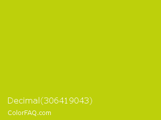 Decimal 306419043 Color is a normal yellow color and the nearest color is Rio Grande #bbd009. Hex code #bdd00b and RGB value is rgb(189,208,11). In RGB color space, this color is composed of 74% red, 82% green, 4% blue, In CMYK color space, this color is composed of 9% cyan, 0% magenta, 95% yellow , 18% black , In HSL color space, this color has a hue angle of 66° , 90% saturation and 43% lightness.