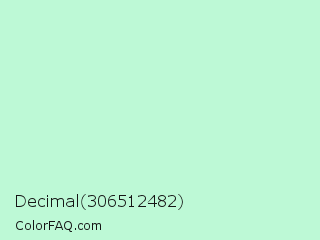 Decimal 306512482 Color is a very light green color and the nearest color is Cruise #b5ecdf. Hex code #bdf9d6 and RGB value is rgb(189,249,214). In RGB color space, this color is composed of 74% red, 98% green, 84% blue, In CMYK color space, this color is composed of 24% cyan, 0% magenta, 14% yellow , 2% black , In HSL color space, this color has a hue angle of 145° , 83% saturation and 86% lightness.