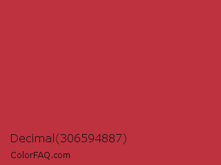 Decimal 306594887 Color is a normal red color and the nearest color is Brick Red #c62d42. Hex code #be313f and RGB value is rgb(190,49,63). In RGB color space, this color is composed of 75% red, 19% green, 25% blue, In CMYK color space, this color is composed of 0% cyan, 74% magenta, 67% yellow , 25% black , In HSL color space, this color has a hue angle of 354° , 59% saturation and 47% lightness.